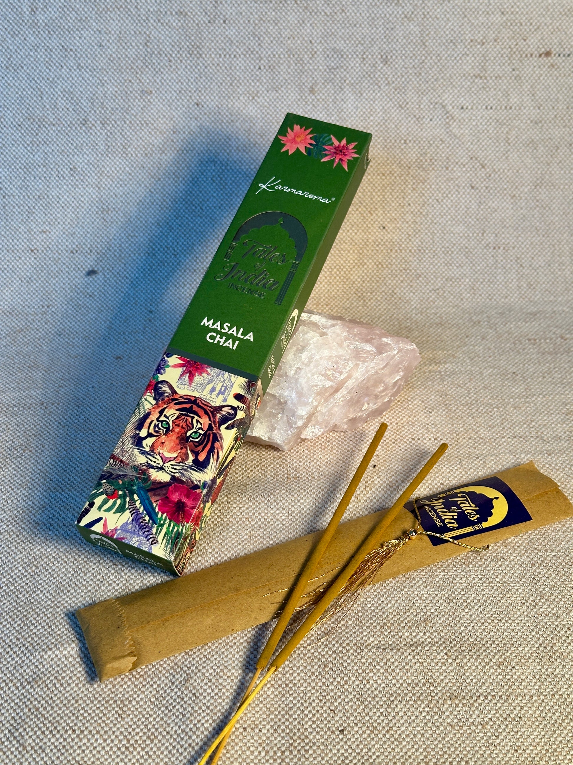 L’encens Masala Chai invite à un véritable voyage olfactif au coeur de l’Inde, comme autour d’une tasse fumante de thé aux épices.