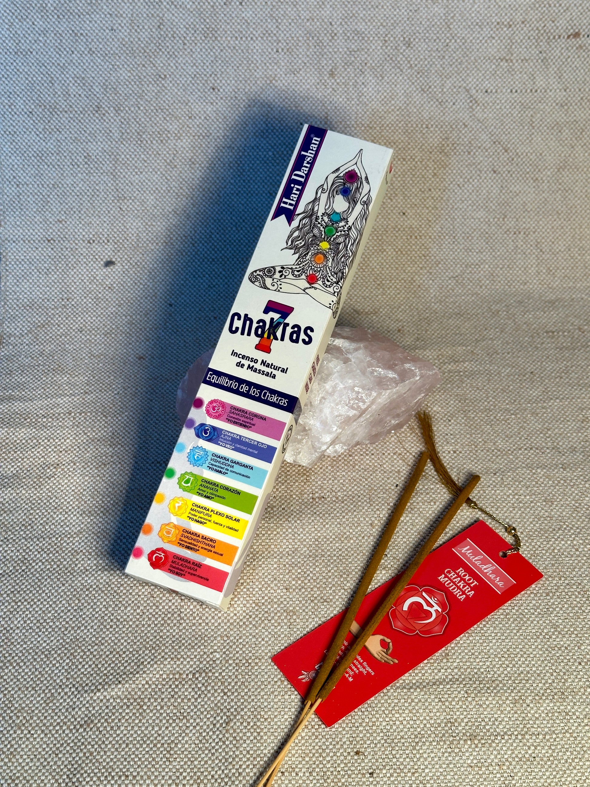 L’encens 7 Chakras favorise l’harmonie intérieure et l’équilibre des centres d’énergie du corps.