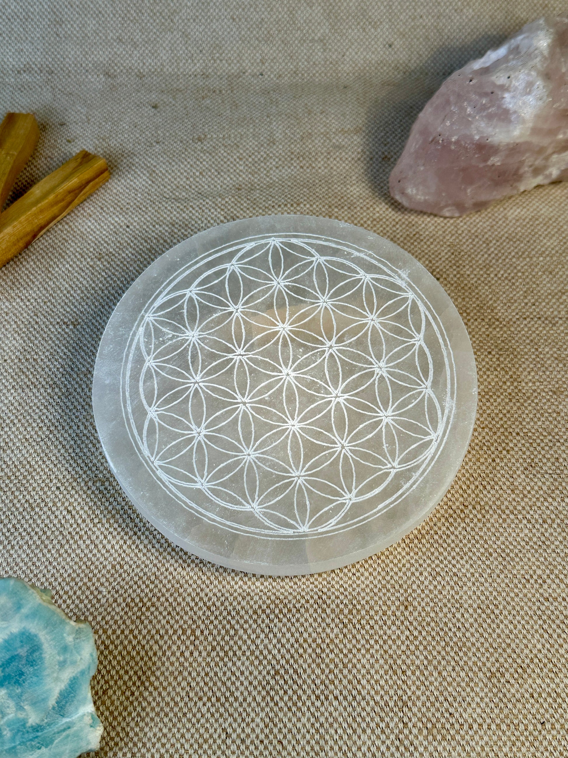 La Fleur de Vie, forme de géométrie sacrée, est idéale pour le rechargement énergétique des pierres, des personnes, des plantes, etc..